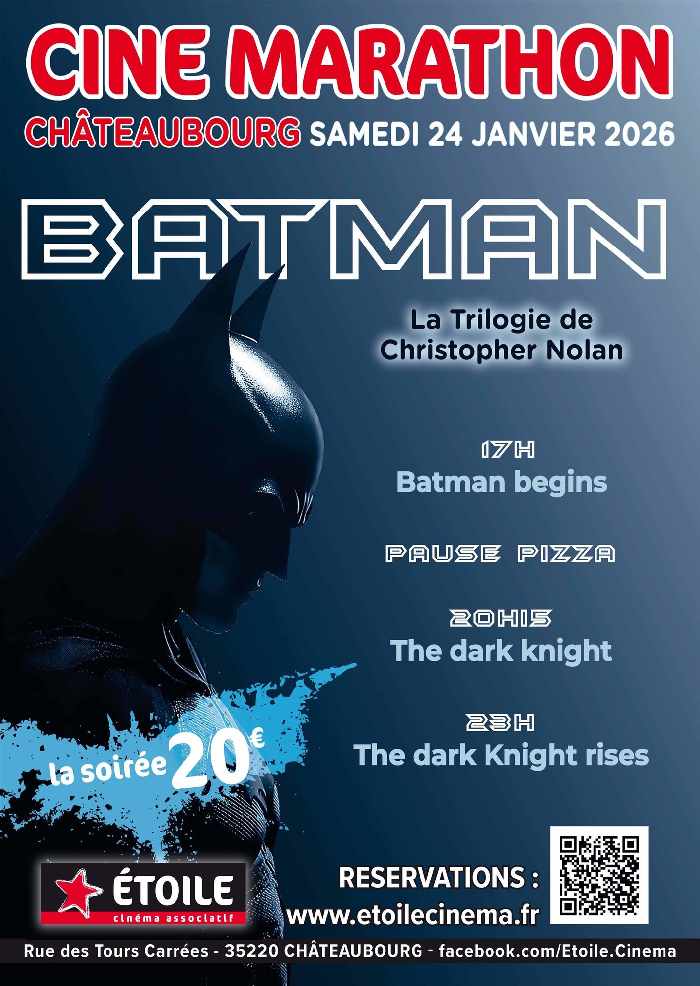L'Étoile Cinéma de Châteaubourg propose son traditionnel Cinémarathon le samedi 24 janvier 2026. Cette année, retrouvez la trilogie des Batman de Christopher Nolan !