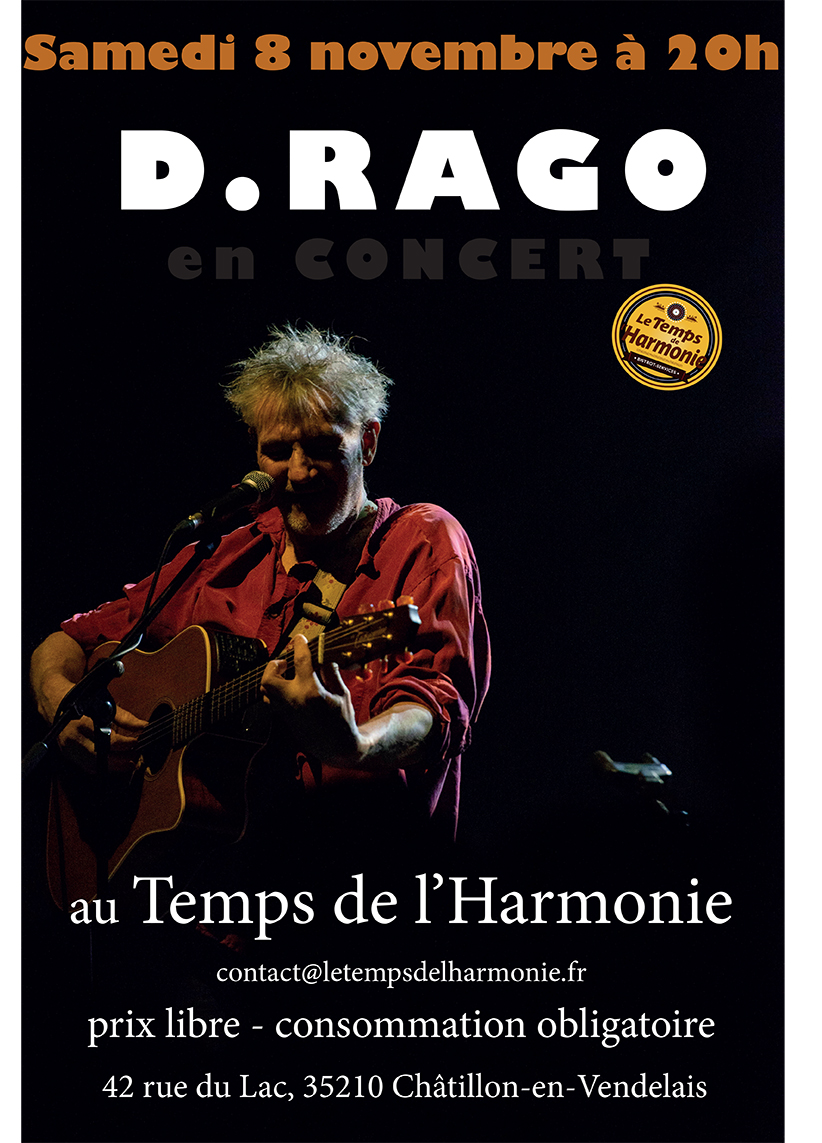 Le Temps de l'Harmonie recevra D.RAGO en concert le samedi 8 novembre à 20h.