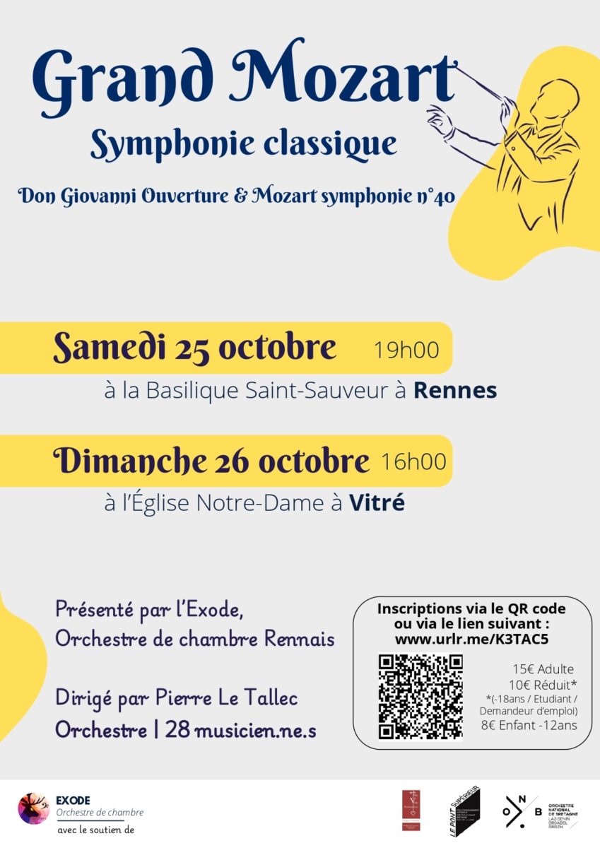 Venez assister au Concert symphonique Grand Mozart interprété par L'Exode, orchestre de chambre, en partenariat avec l'association Vitré Patrimoine.