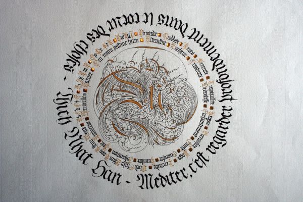 Joëlle Haquet pratique la calligraphie depuis deux ans, sous la houlette de son professeur Richard L’empereur. La découverte de cet art a été pour elle une révélation qui lui a ouvert tous les champs des possibles : création, imagination, recherche esthétique. La calligraphie requiert patience, lenteur, précision, humilité également car l’apprentissage du geste est exigeant. Au-delà de la satisfaction du travail accompli, cette discipline conduit à un état de méditation et de sérénité où le temps est comme suspendu.