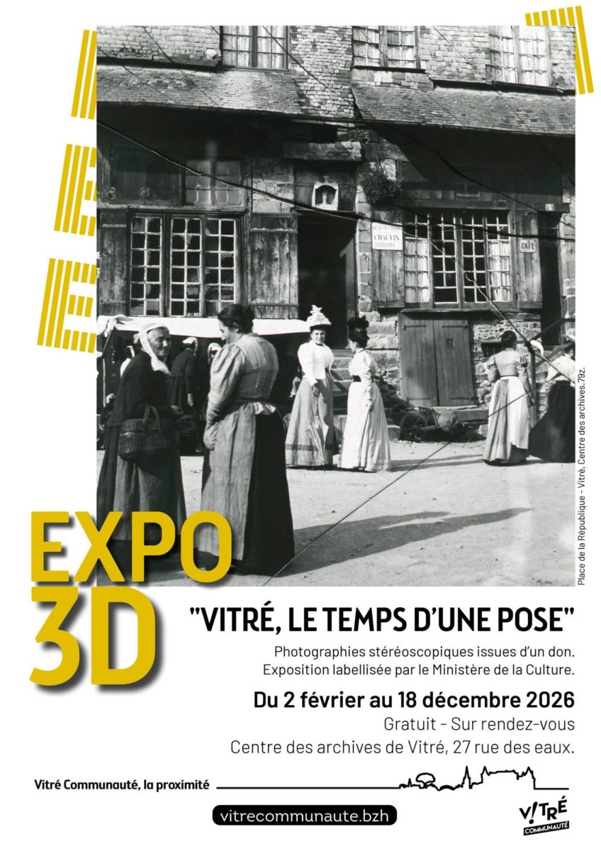 Exposition visible au Centre des archives autour de photographies stéréoscopiques au format 3D (lisibles avec des lunettes adaptées), photographies et présentation sous vitrines d’appareils et objets photographiques.