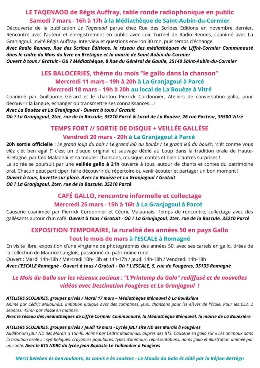 Dans le cadre du mois du gallo, assistez à un atelier de conversation gallo, pour découvrir la langue, échanger ou transmettre ses connaissances à Vitré.