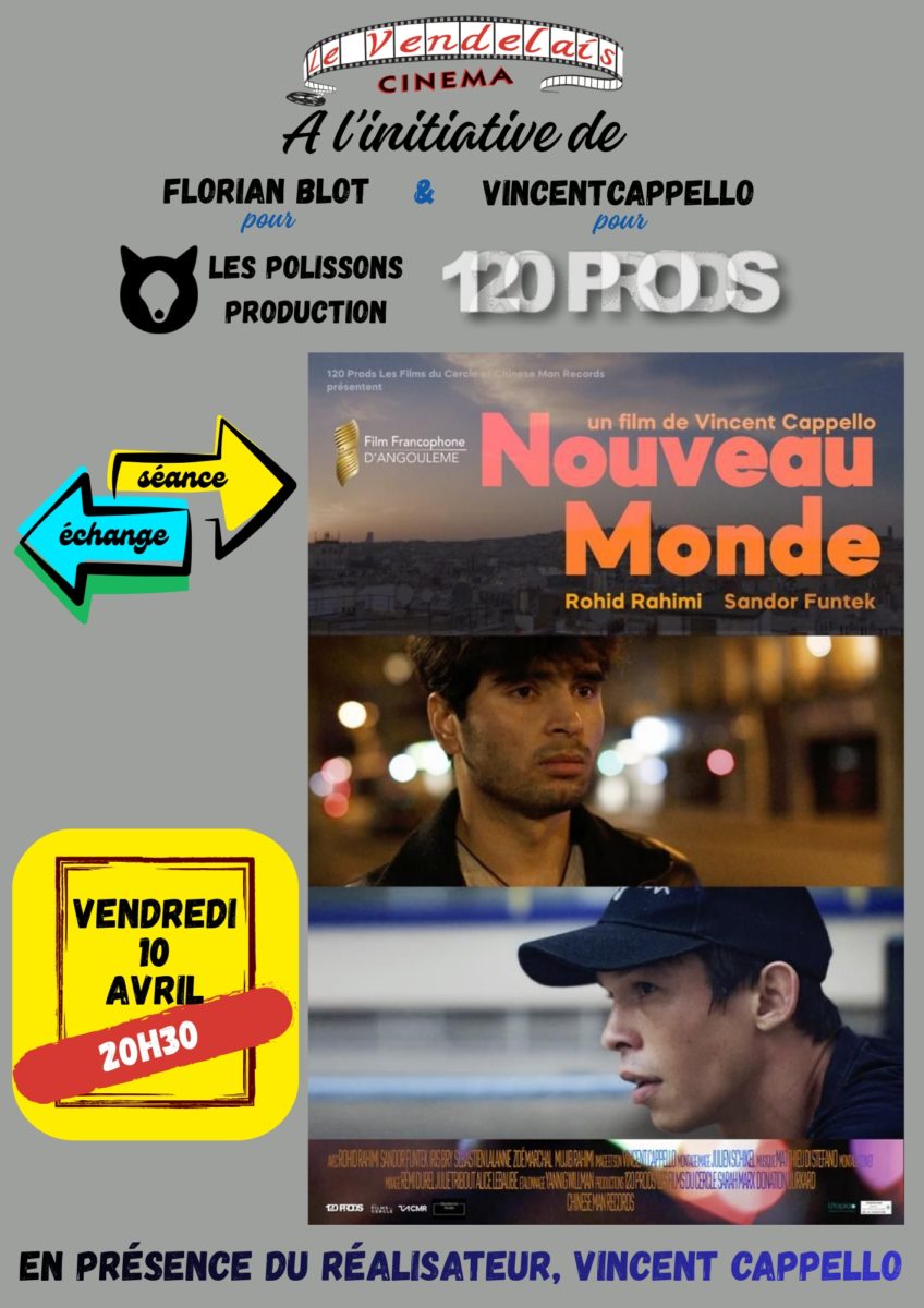 Séance d'échange le vendredi 10 avril à 20h30, au cinéma Vendelais pour le film Nouveau Monde. En présence du réalisateur, Vincent Cappello.