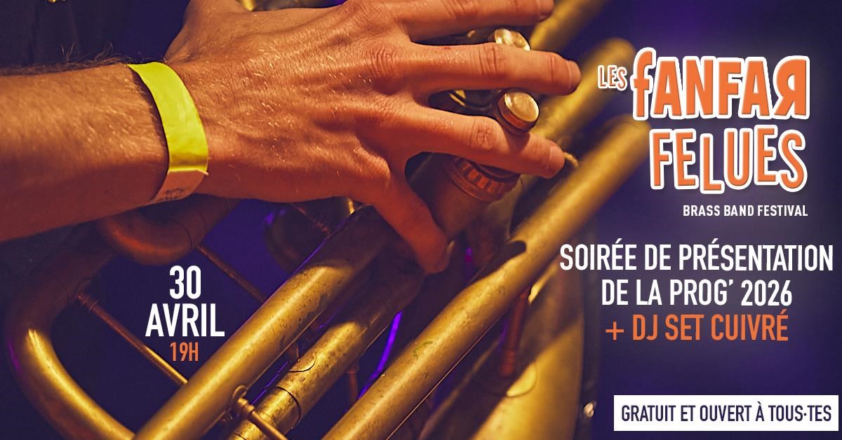 L'équipe des Fanfarfelues vous donne rendez-vous le jeudi 30 avril pour découvrir en musique et en avant-première la programmation de la 12ème édition du festival (21 au 23 août 2026).