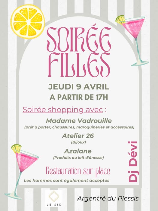 Soirée filles jeudi 9 avril à Argentré-du-Plessis.