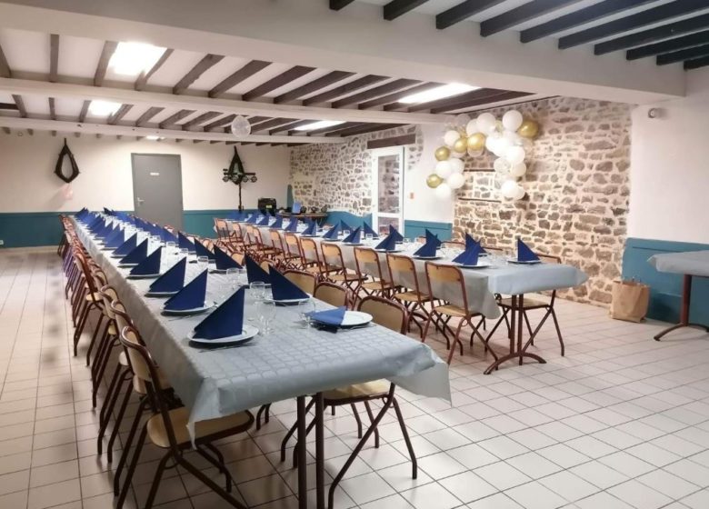 Tables de pique-nique. Location de barnums. Cuisine professionnelle, fours professionnels, vaisselle fournie, draps fournis.