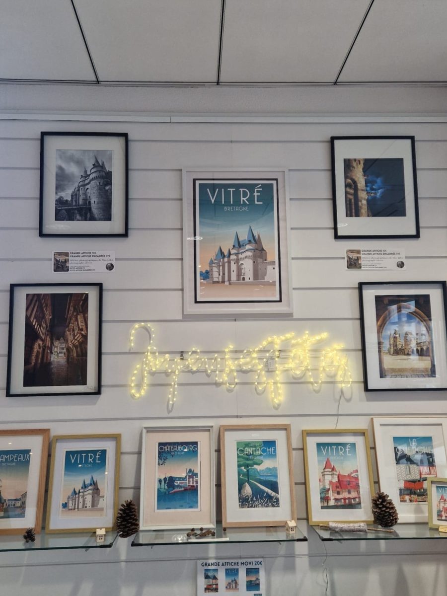 • Les affiches MOVI : À l’effigie de Vitré, La Guerche-de-Bretagne, Champeaux, Châteaubourg et du lac de la Cantache. En vente au format 40×60 cm, 20×30 cm ou en version carte postale.
