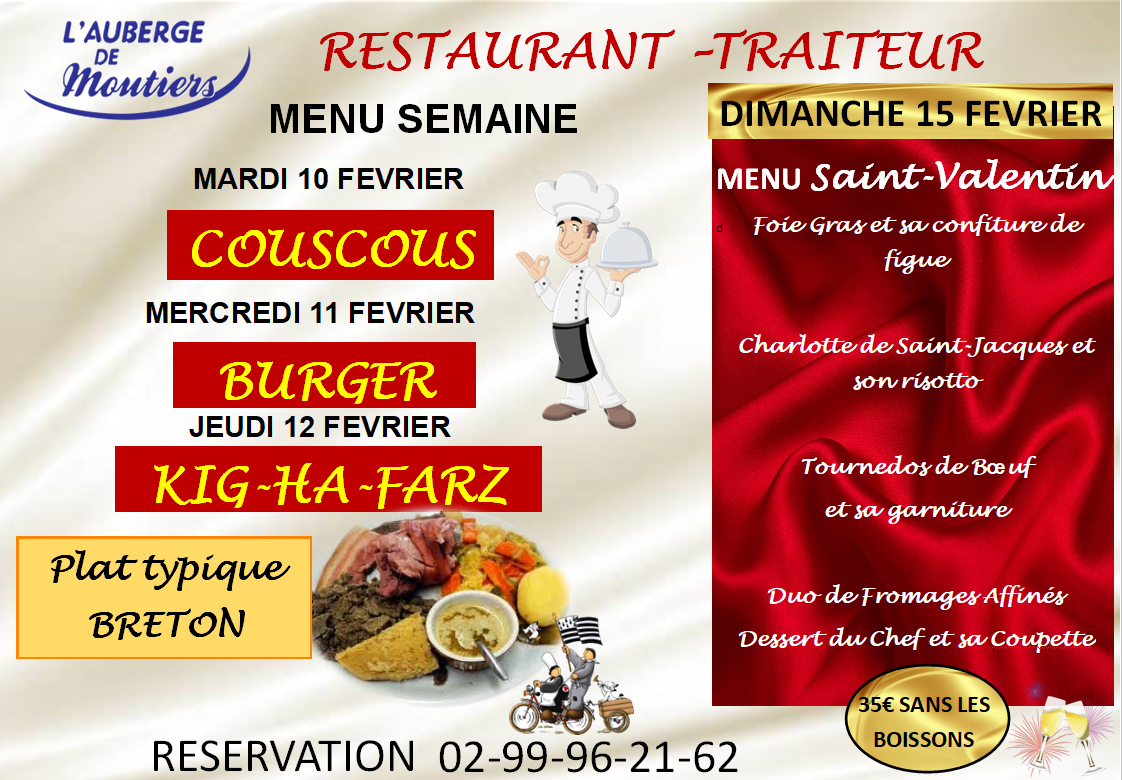 Restaurant-traiteur, entre Vitré et La Guerche-de-Bretagne, l’Auberge de Moutiers offre un cadre et une ambiance chaleureuse.