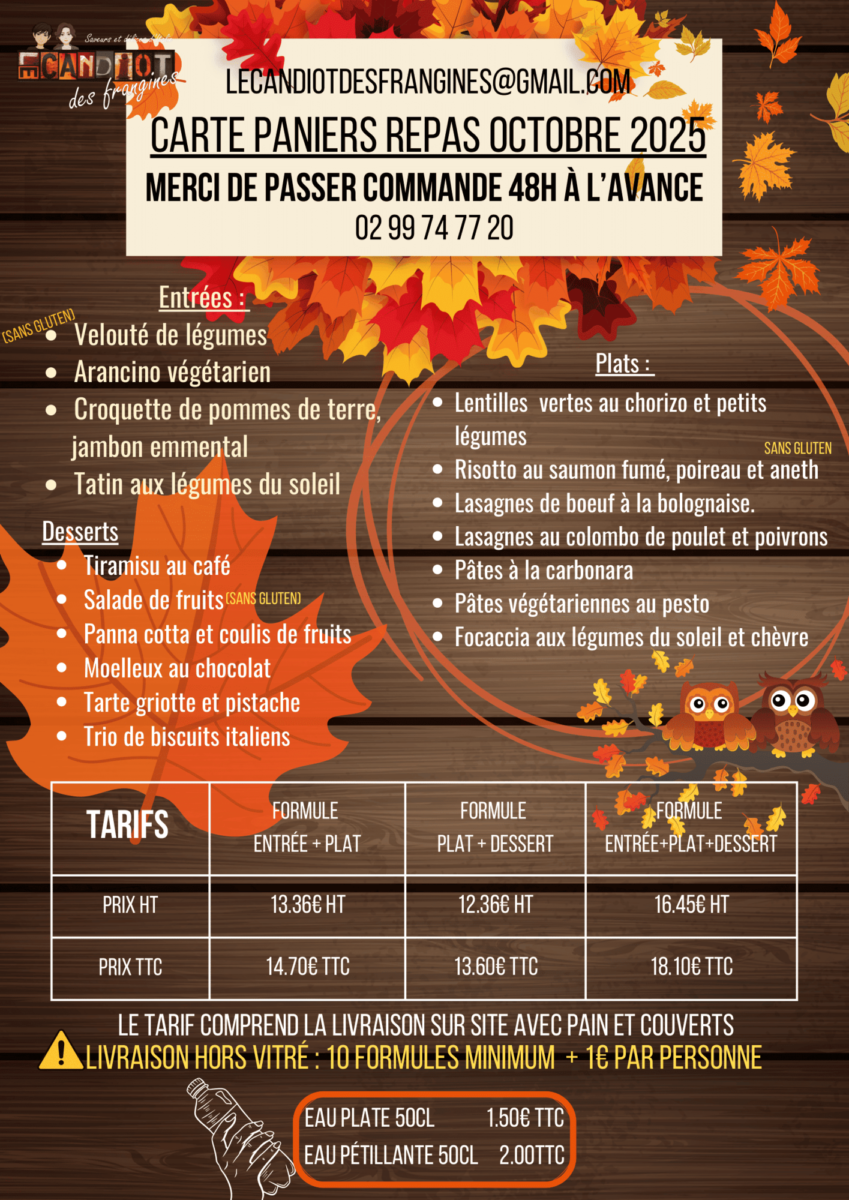 Découvrez via les photos la carte panier repas d'Octobre 2025.
